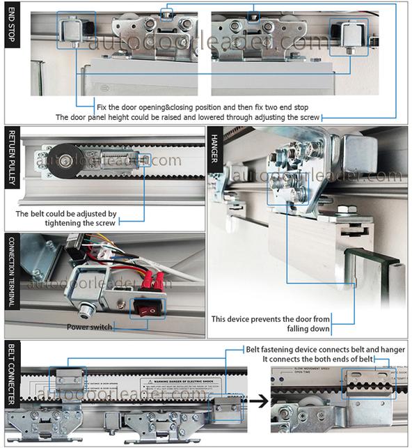 Automatic motorised door open close mechanism automatic motorised door open close mechanism feature automatic motorised door open close mechanism technical data automatic motorised door open close mechanism components including components quantity components quantity control panel 1 receiver 1 motor gear box assembly 1 return pulley 1 microwave sensor 2 terminal input assembly 1 tooth belt 1.